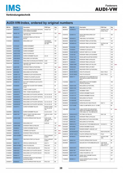 #1 Skrevet November 27, 2011 NA = "Not Available" / "No longer Available" For en stund siden kom jeg over denne katalogen når jeg søkte etter klips og div til min prosjektbil som ikke lenger var mulig å få tak på. Den gikk i glemmeboken til nå idag når jeg fikk spørsmål på PM ang. kanalklips til typ 85. Håper denne er til hjelp for flere: Jeg har konvertert pdf filen til enkelte .jpg så de kan sees på forumet. Men kan evnt. legge ut filen i sin helhet om noen vil det senere. Jeg husker desverre ikke hvor jeg fikk tak i den, men jeg tror det var igjennom et polsk forum. Klikk på bildene for full størrelse Edit: jeg fant pdf filen: http://www.renoks.lv/uploaded_files/AUDI-VW.pdf 0 Del dette innlegget Lenke til innlegg Del på andre sider Flere delingsalternativer...
