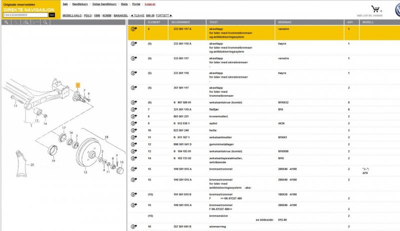 #12 Skrevet Februar 27, 2015 Det er 1 side som gjelder: http://www.partslink24.com Den er levert av LexCom, som leverer Etka, og er en fullversjon av Etka på web, og du kan bestille deler og hente dem hos forhandler. Helt genialt. Dessverre koster det 25 € i månedspris, eller 20 € i måneden om du binder deg for et år. Du kan også velge det språket du måtte ønske, Har prøvd de gratislinkene som det referes til over, men skal du ha en side som er stabil og som alltid er oppdatert (det er altså en offisiell Etka-side), bør du velge dette. Selv har jeg akkurat kjøpt abonnement for en måned, og er veldig fornøyd . Vedlagt er et skjermbilde av programmet. 0 Del dette innlegget Lenke til innlegg Del på andre sider Flere delingsalternativer...