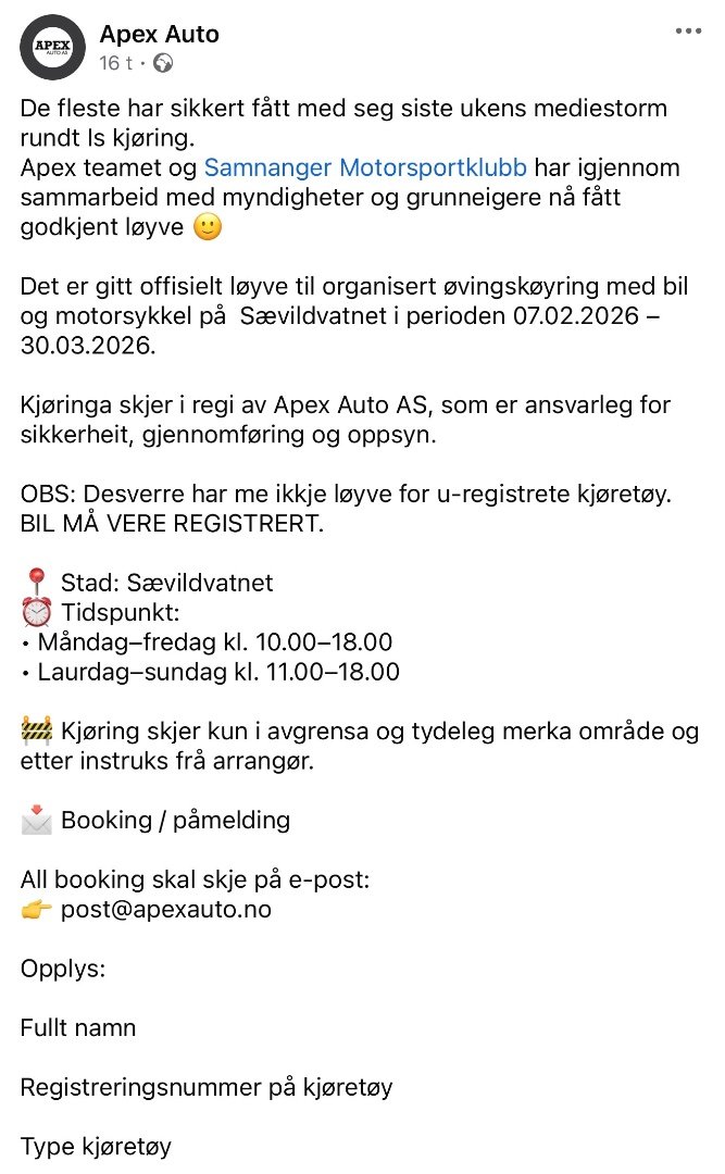 Is/snø bane kjøring, noen som skal vinteren 2026?